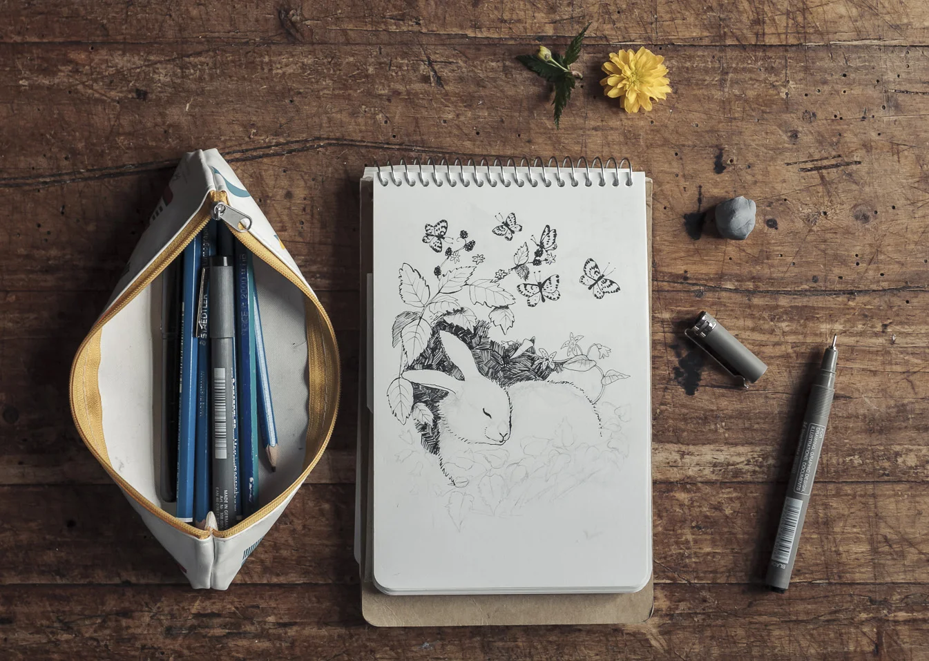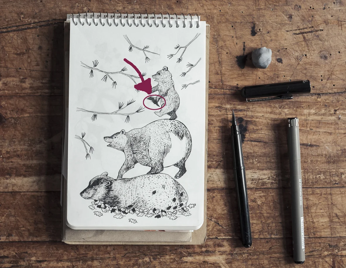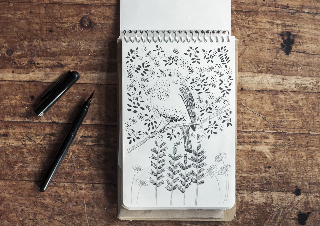This little fox is drawn wih the Pocket Brush, while the bacground is done with a fineliner, which creates more consistent lines.