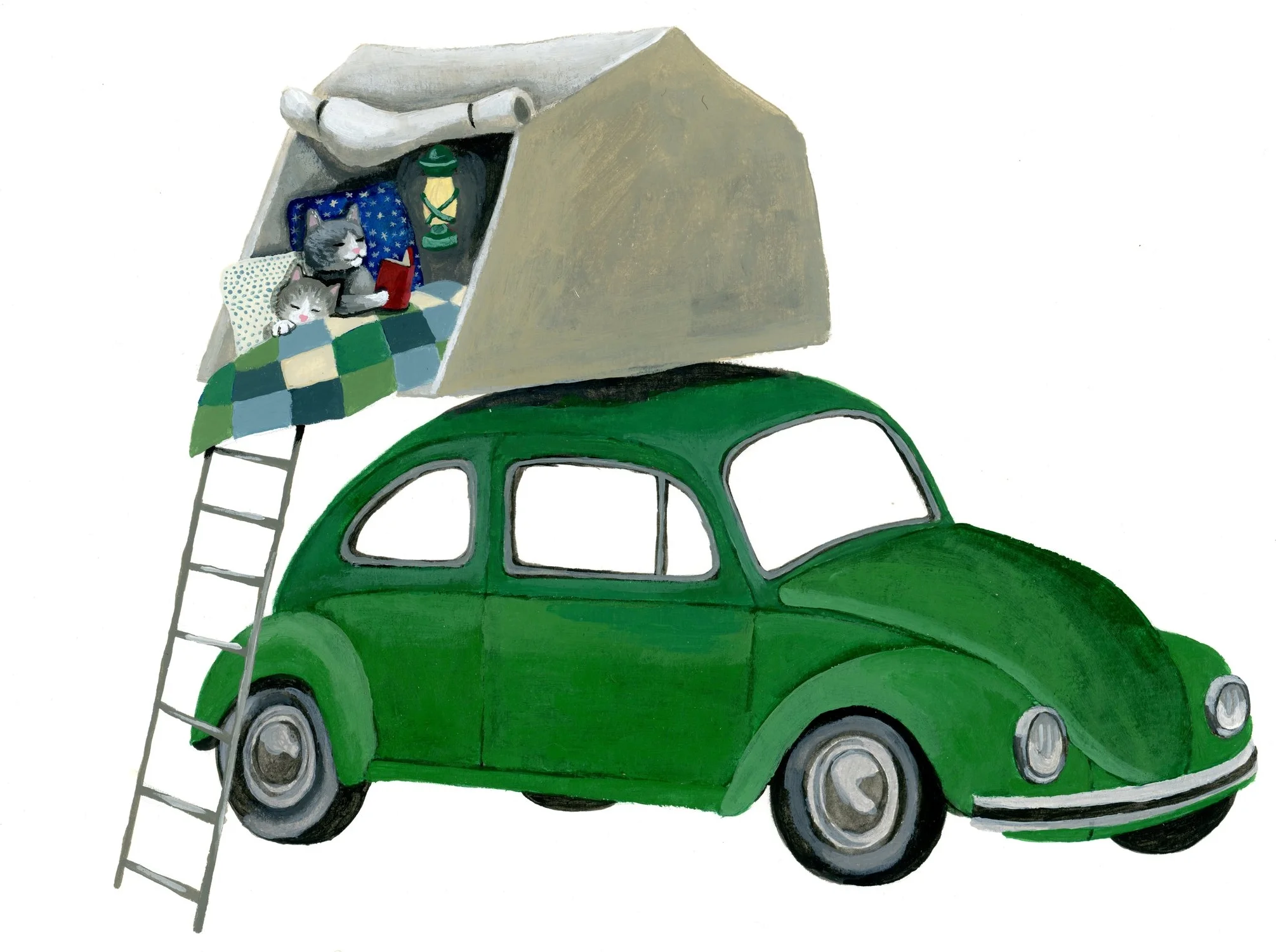 These little cats love camping and so do I! This painting reminds me of my childhood, when we put up a tent in our backyard, dragged a whole pile of blankets and cushions in it and read books in the light of a flashlight until we fell asleep.