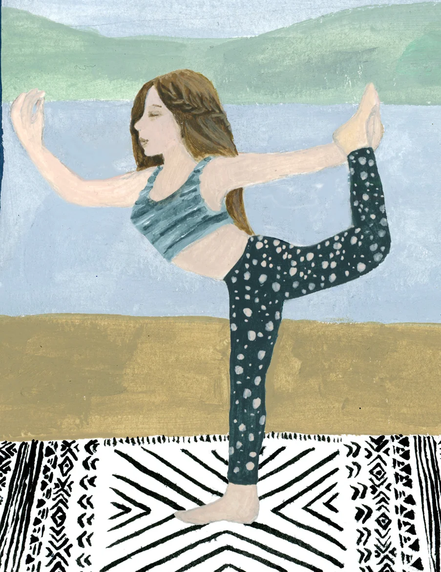 Since I went sick past fall I picked up my yoga/meditation practice more seriously. For a couple of months now I practice for two hours a day and it's been wonderful. I notice I am gradually getting more and more flexible in my body as well as in my mind. Some poses that were extremely challenging in the beginning, like the one in this painting are now my favourite ones.